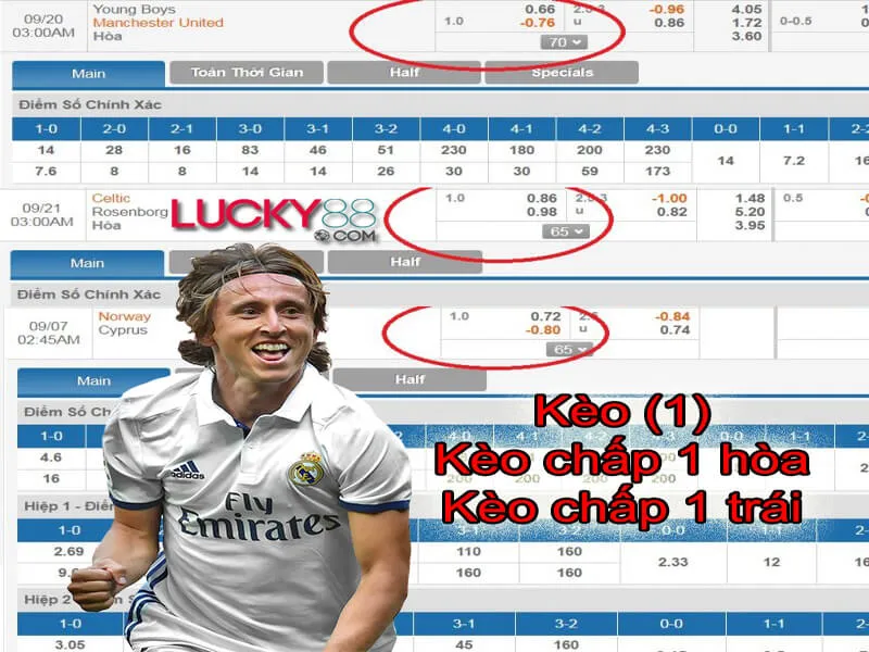 - Đội cửa trên thắng đội cửa dưới 1 bàn thắng thì người đặt vào đội cửa trên sẽ được thắng nửa tiền cược